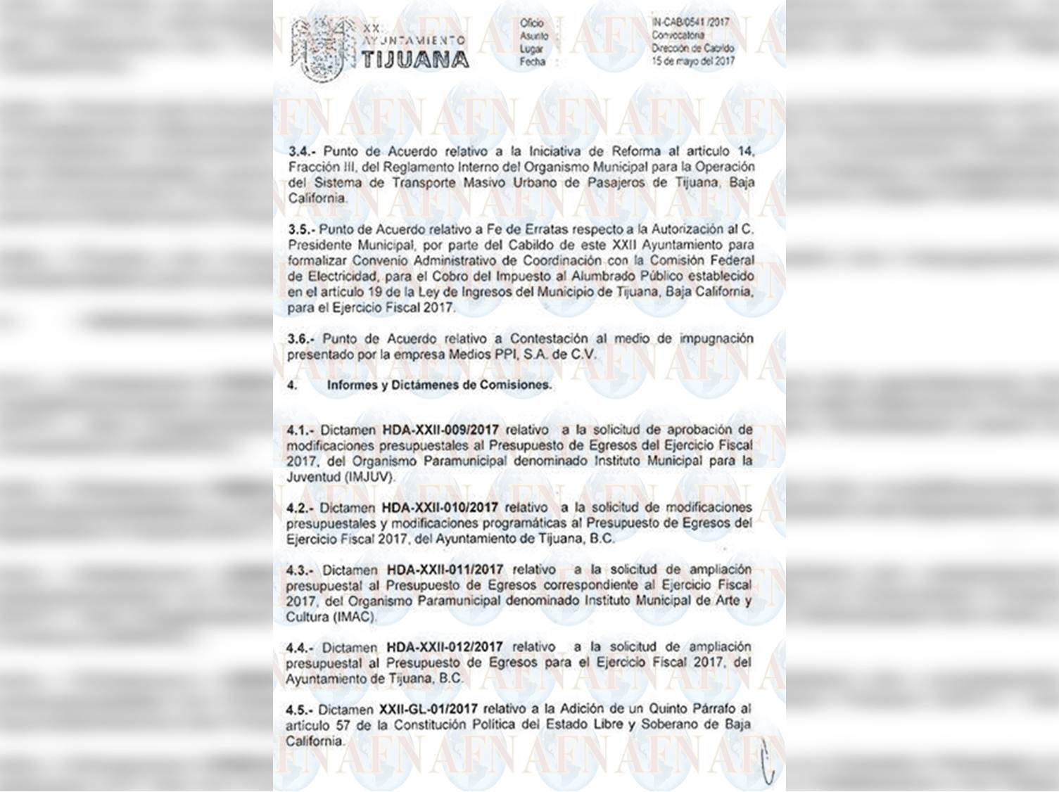 PD.- De nueva cuenta, la sesión celebrada este día fue extraordinaria, para que los regidores de oposición no pudieran meter ningún otro tema a discusión, ya que eso debe hacerse en sesiones ordinarias, o se pueden abordar durante “asuntos generales” que en las extraordinarias no se permiten. En casi seis meses que lleva esta administración, tan sólo la “alcaldía de Tijuana” ha llamado a una sola sesión ordinaria.