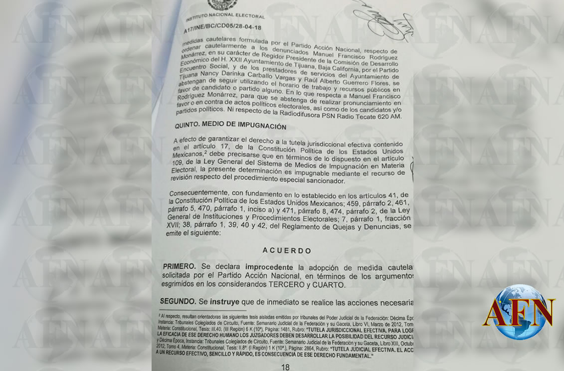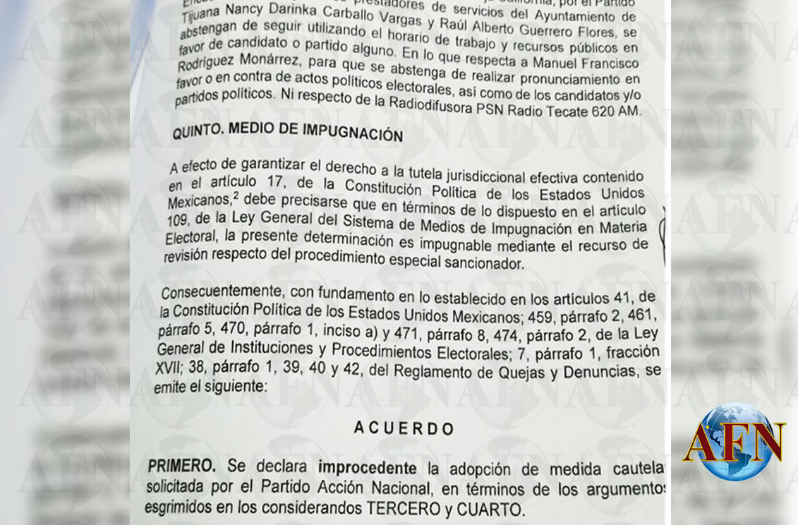 Pero no fue el único acusado, sino también dos de sus colaboradores que fueron señalados prácticamente de haber participado en una “asociación delictuosa” para cometer esa grave conducta, por parte de la dirigencia encabezada por Joaquín Palomera, presidente del Comité municipal del blanquiazul en Tijuana.