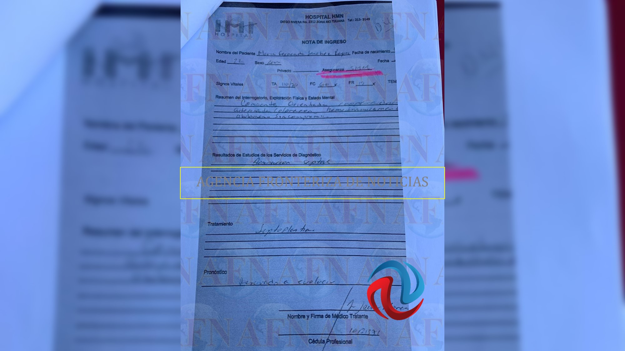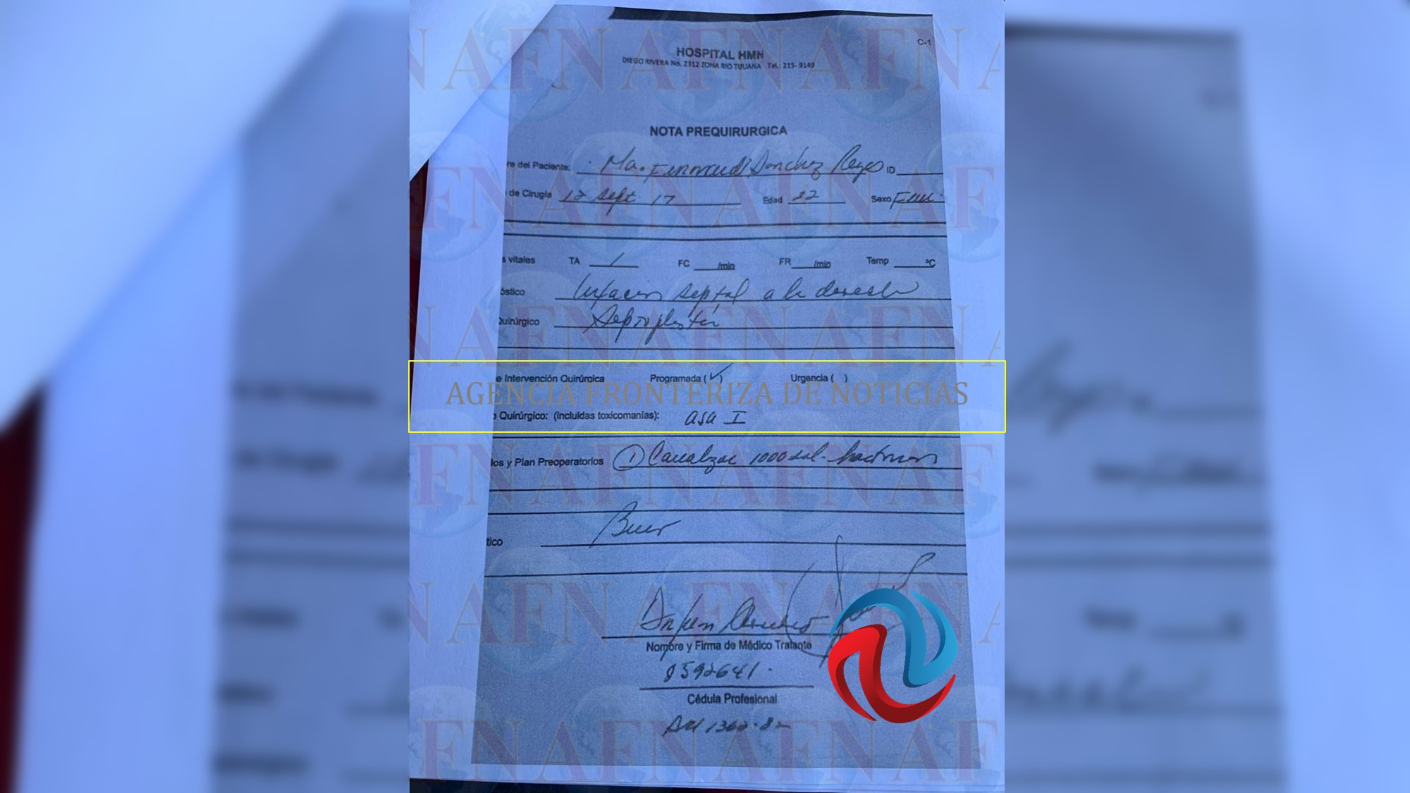 Este caso, al margen de desarrollar un poco más los anteriores asuntos, es interesante, porque la chica tiene 24 años de edad; tenía 22 cuando el 12 de septiembre de 2017 se le canalizó al Hospital de la Mujer y el Niño (HMN) ubicado en Diego Rivera número 2312 de la Zona Río Tijuana, bajo el supuesto diagnóstico de síndrome Poland y desviación septal, pero en lugar de solicitar una septoplastia que es la que se practica para corregir la desviación del tabique nasal, según la orden para la aplicación de la anestesia, se emitió para ser sometida -de manera simultánea- a una rinoplastia, que es una cirugía estética de nariz, y al aumento de mamas, que no tengo que explicarles que se refiere a implantes para aumento de senos.