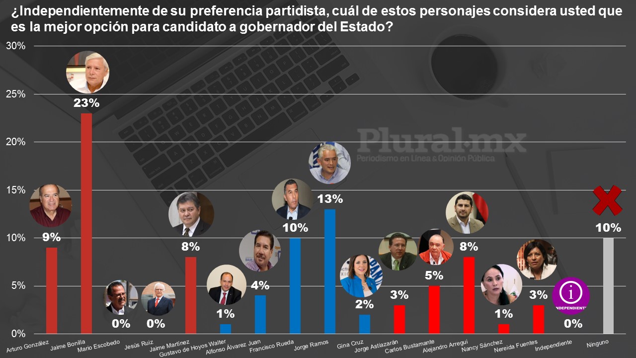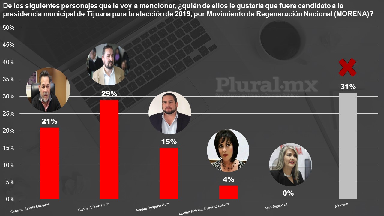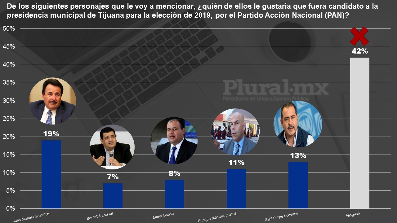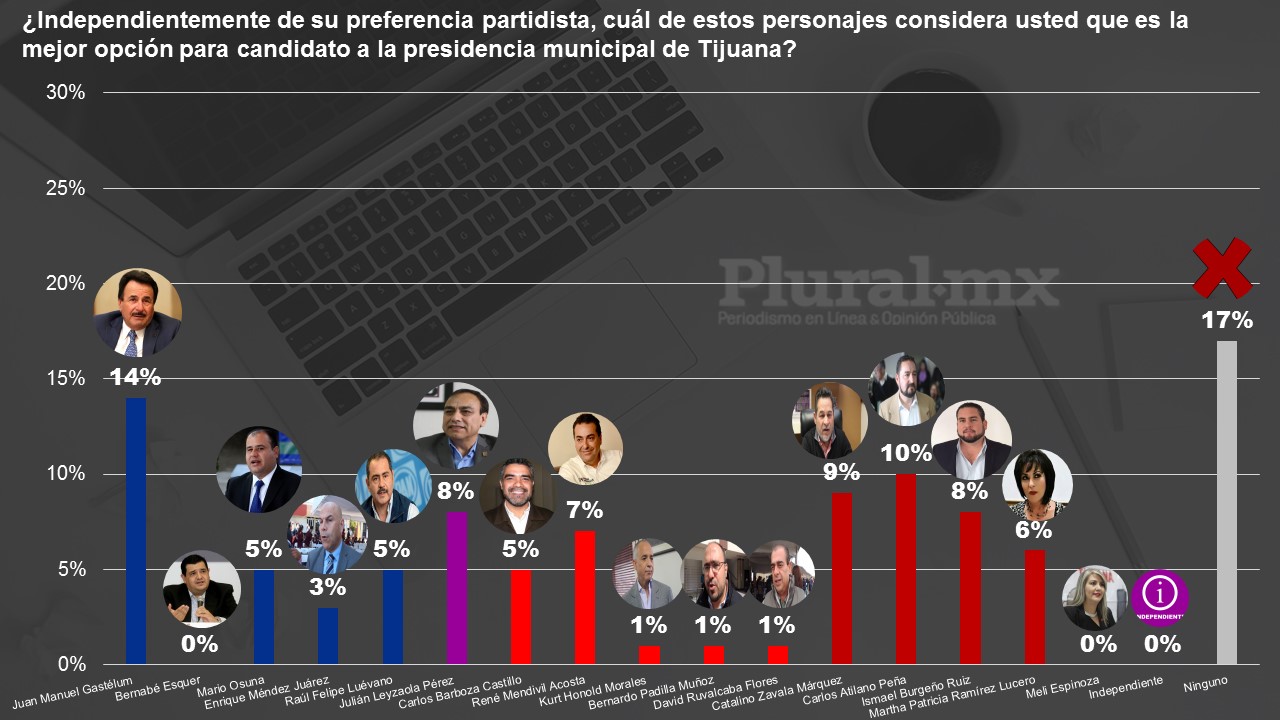 A la pregunta textual de quién considera la mejor opción para candidato a la presidencia municipal de Tijuana, el panista sobresale de una larga lista, incluso sobre Leyzaola Pérez y los aspirantes de Morena como Carlos Atilano, Catalino Zavala e Ismael Burgueño.