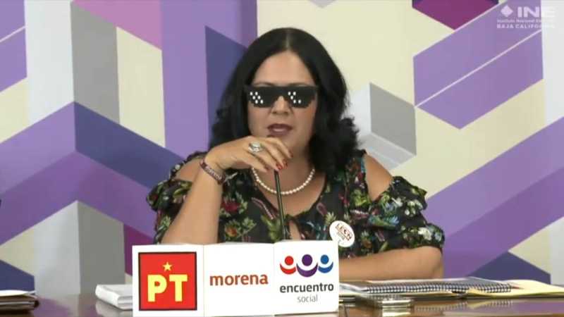 En un momento del debate, la mexicalense León Gastelum decidió burlarse de sus contrincantes, y a la voz de que “la guerra sucia nos hace los mandados”, se colocó unos Lentes Thug Life Trolls que los jóvenes utilizan en son de burla.