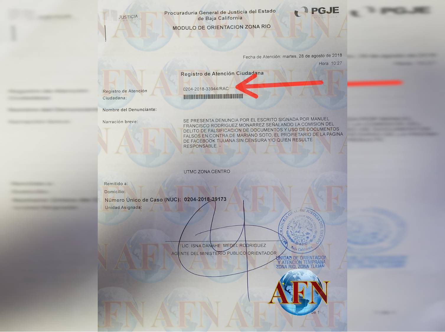 El Regidor aseguró que el mencionado acostumbra entregar información previamente elaborada, a algunas personas que se manejan como periodistas, inclusive el ahora denunciado, para que publiquen “notas” difamatorias contra él y otros opositores. La denuncia penal quedó plasmada bajo el Registro de Atención Ciudadana: 0204-2018-33944/RAC.