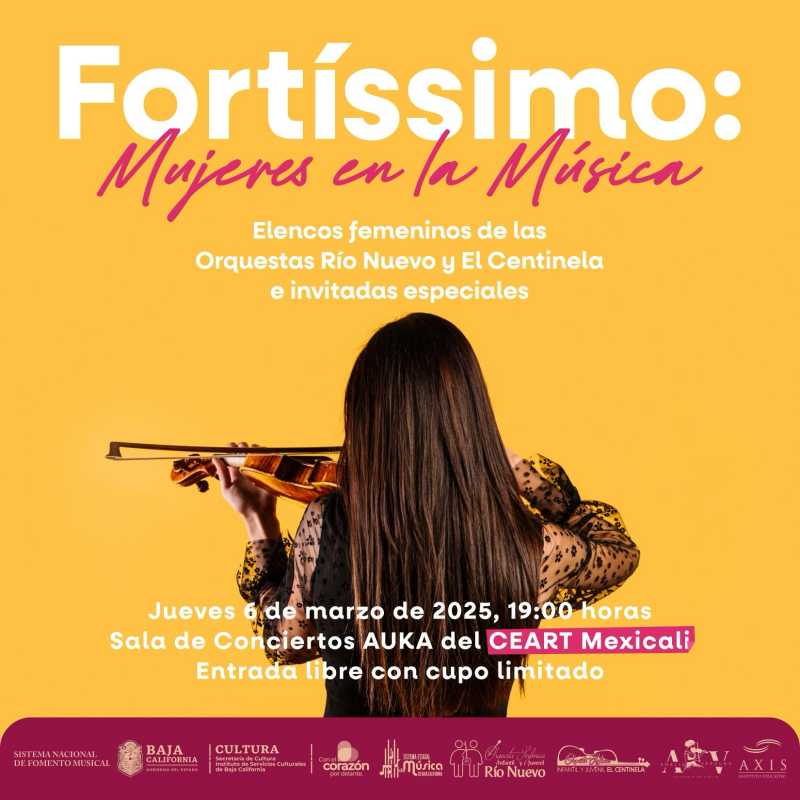 En Mexicali, las actividades inician el jueves 6 con la mesa de debate Del anonimato al reconocimiento: Mujeres que hicieron historia y el concierto Fortíssimo: Mujeres en la Música. El viernes 7 se presentará Metamorfosis de una mujer, con danza aérea y contemporánea.