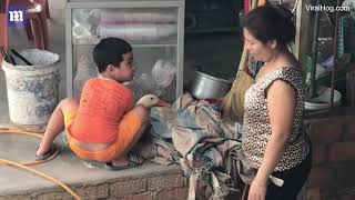 CIUDAD DE MÉXICO 10 AGOSTO 2018 (LA SILLA ROTA).- Un niño vietnamita evita que una mujer mate a un pato. El pequeño se ...