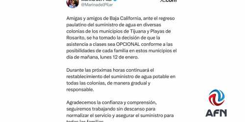 TIJUANA BC 10 DE ENERO DE 2026 (AFN).- Hasta este domingo 11 de enero, alrededor de las 6-7 de la mañana, será restablecido el ...
