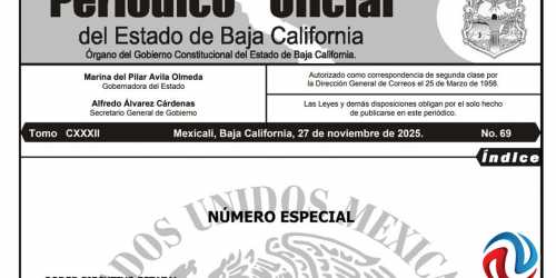 MEXICALI BC 28 DE NOVIEMBRE DE 2025 (AFN).- Ayer se publicó en el Periódico Oficial del Estado, como número especial, un acuerdo ...