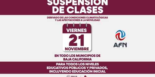 MEXICALI BC 20 DE NOVIEMBRE DE 2025 (AFN).- La gobernadora Marina del Pilar Ávila Olmeda anunció la suspensión de clases para este ...