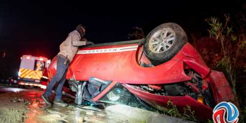 TIJUANA BC 18 DE NOVIEMBRE DE 2025 (AFN).- El conductor de un vehículo Ford Mustang rojo volcó en el libramiento Rosas ...