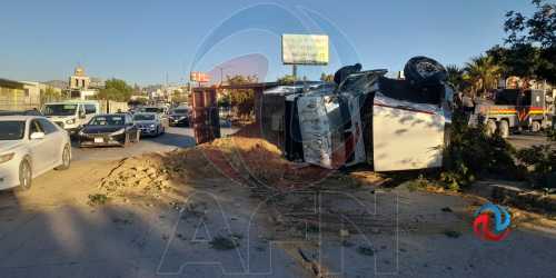 TIJUANA BC 20 DE OCTUBRE DE 2025 (AFN).- Un tracto-camión cargado con tierra se volcó sobre el Bulevar Casa Blanca a la ...