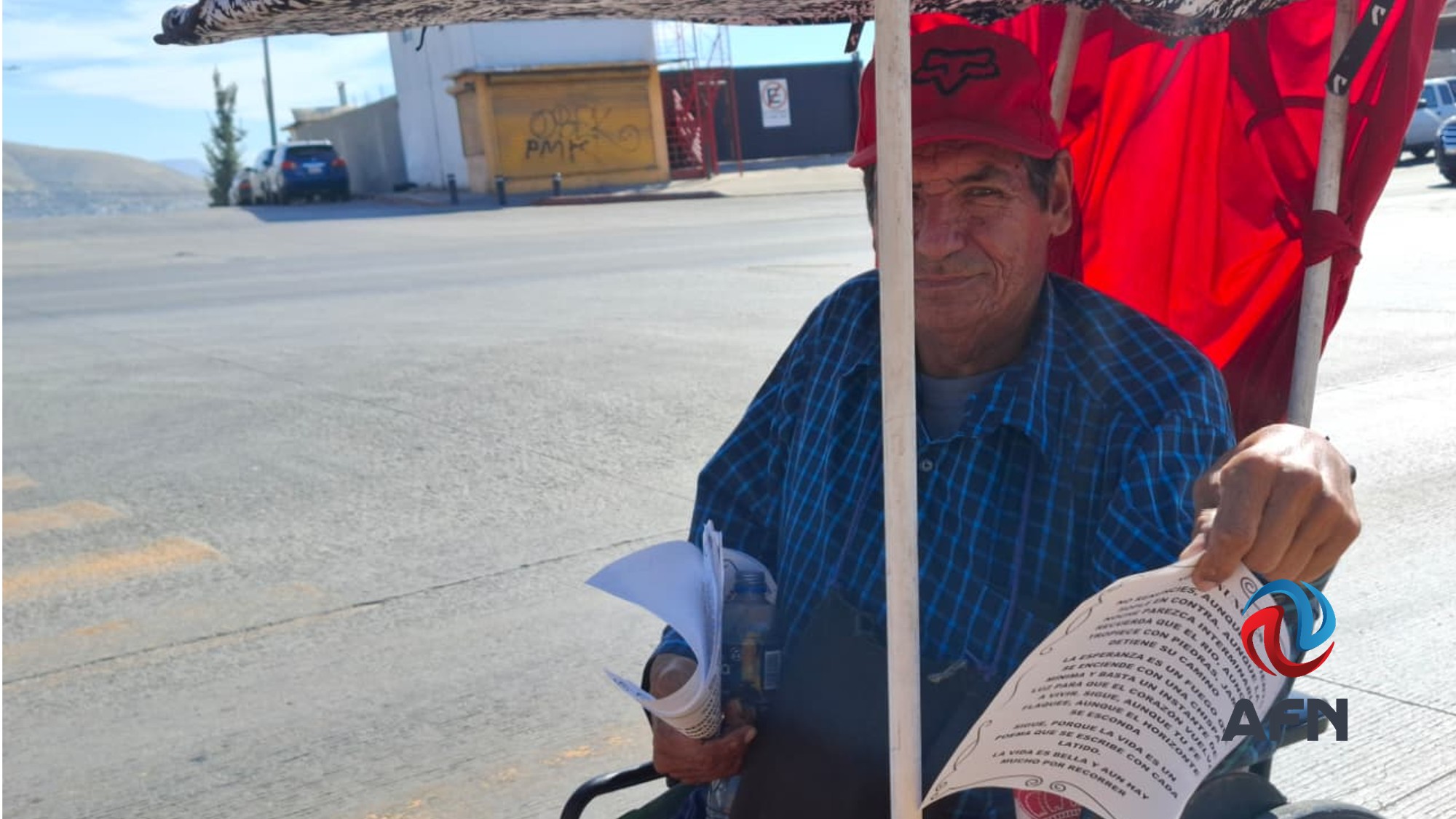 TIJUANA BC 22 DE MARZO DE 2026 (AFN).- En el Bulevar Cucapah, a la altura de la calle Chilpancingo, se puede encontrar algo que rompe con la rutina de una ciudad tan acelerada como Tijuana; mientras muchos vendedores ofrecen dulces, otros limpian parabrisas o piden caridad, un hombre en silla de ruedas comparte algo diferente: "mensajes, poemas, reflexiones y más", para quienes pasan en su coche o caminan por la zona.