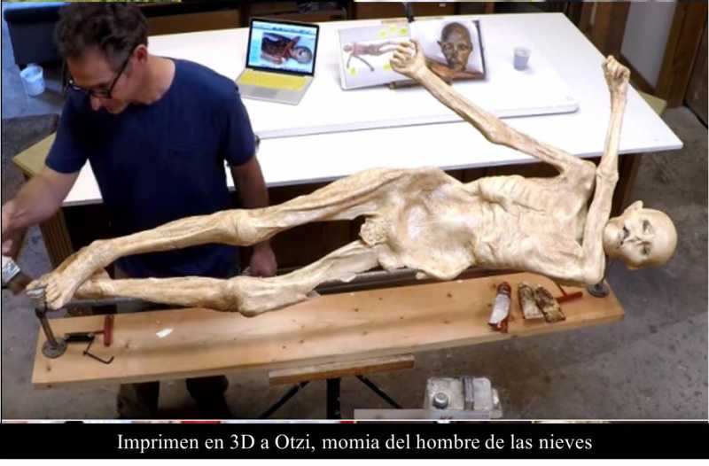 ESTADOS UNIDOS 20 DE ABRIL DE 2016 (SDPNoticias).- “La reconstrucción de las manos, que no habían sido capturadas por el escáner fue un verdadero desafío”. Gracias a una impresora 3D, científicos lograron replicar una momia de 5 mil 300 años de antigüedad perteneciente a Otzi, el hombre de las