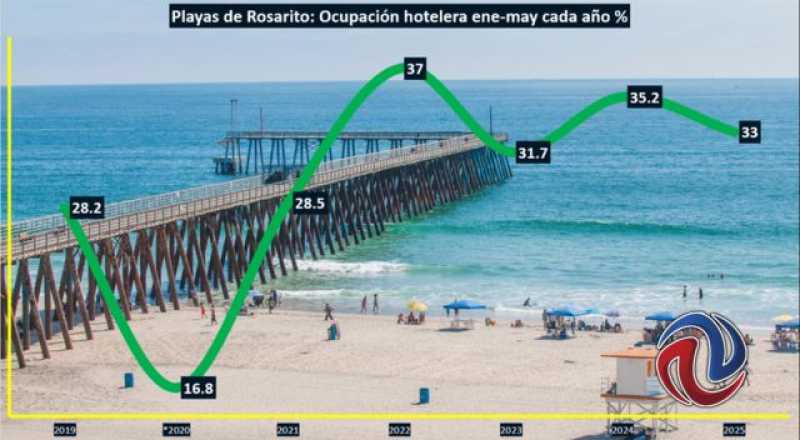 TIJUANA, BC, 2 DE AGOSTO DE 2025 (AFN).- La ocupación hotelera en Playas de Rosarito se ubicó en 33% a tasa anual en el periodo acumulado de enero y mayo de 2025 en comparación al 35.2% a tasa anual que registró para ese mismo lapso, pero de 2024, de acuerdo con las cifras de DATATUR de la Secretaría de Turismo federal.