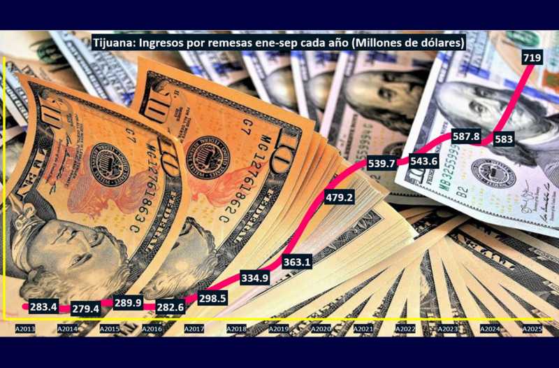 De tal manera, el Banxico documentó que Tijuana recibió 719 millones de dólares de remesas entre enero y septiembre de 2025 para rebasar los 583 millones de dólares que ingresaron en ese mismo lapso, pero de 2024 y marcar su mayor nivel de la historia.