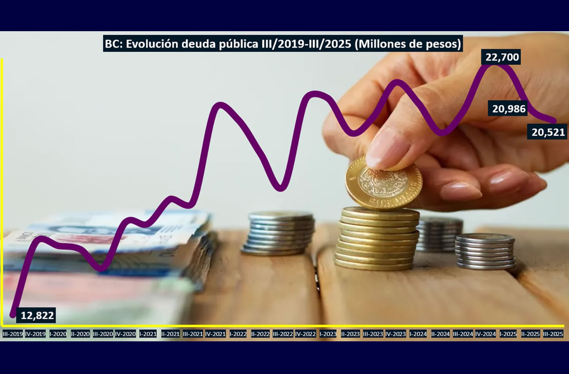 TIJUANA BC 12 DE DICIEMBRE DE 2025 (AFN).- El gobierno del Estado de Baja California aumentó la deuda pública en 18.5% en los últimos cuatro años, de acuerdo con las cifras de la Secretaría de Hacienda y Crédito Público (SHCP), sin embargo, no se reflejan en una optimización de los créditos a través de la obra pública.