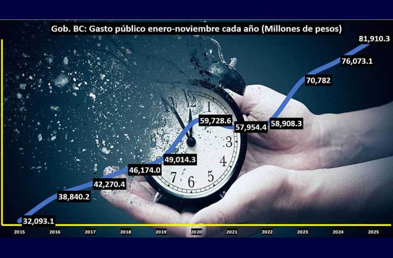 TIJUANA BC 23 DE ENERO DE 2026 (AFN).- El gasto público del gobierno del Estado de Baja California subió 7.13% real a tasa anual en el lapso acumulado enero-noviembre de 2025 en comparación al mismo periodo de 2024, según el resumen financiero-presupuestal de la Secretaría de Hacienda local.