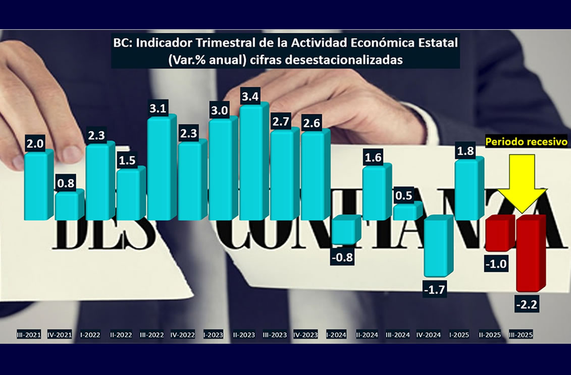 De acuerdo con el INEGI, los empresarios no ven un momento adecuado para invertir y les preocupa la situación económica del país. En el caso del Estado, los más recientes indicadores sobre el comportamiento de la economía documentan una caída del 1% anual en el segundo trimestre y otra contracción del 2.2% anual en el tercer trimestre de 2025, para dar como resultado un periodo recesivo.