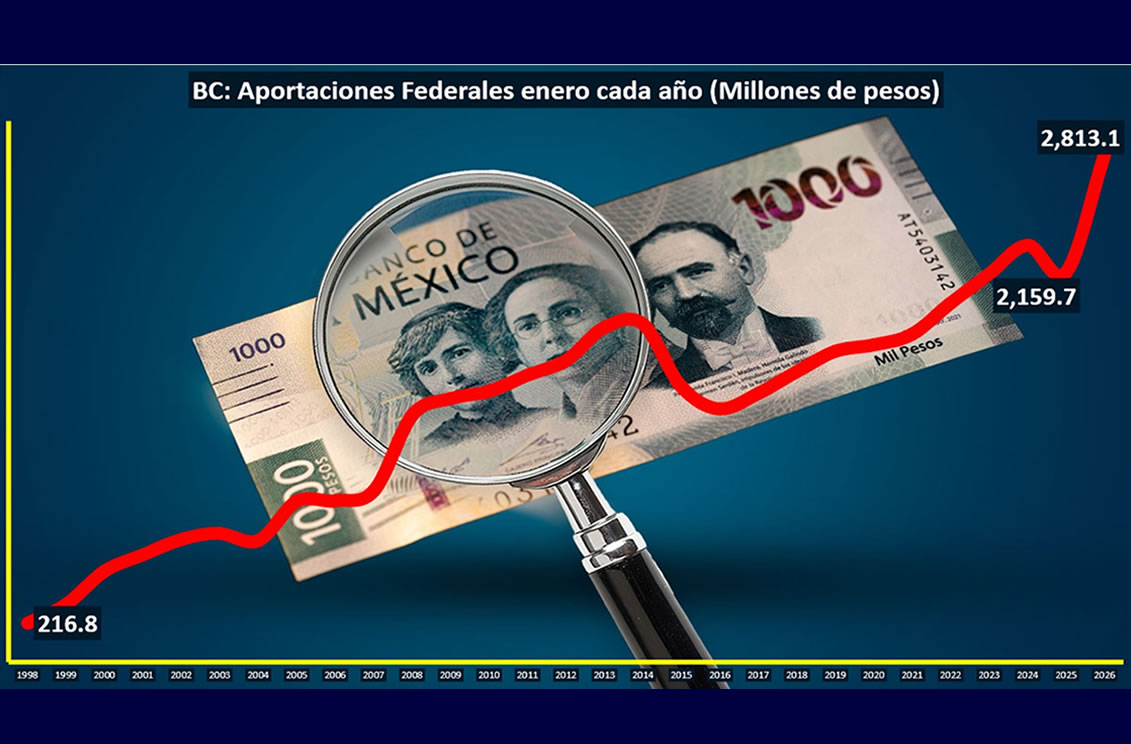 TIJUANA BC 6 DE MARZO DE 2026 (AFN).- La Secretaría de Hacienda y Crédito Público (SHCP) aumentó 25.5% real a tasa anual las Aportaciones Federales pagadas al gobierno del Estado de Baja California en enero de 2026 respecto al ejercicio fiscal de 2025, de acuerdo con la actualización de las transferencias.