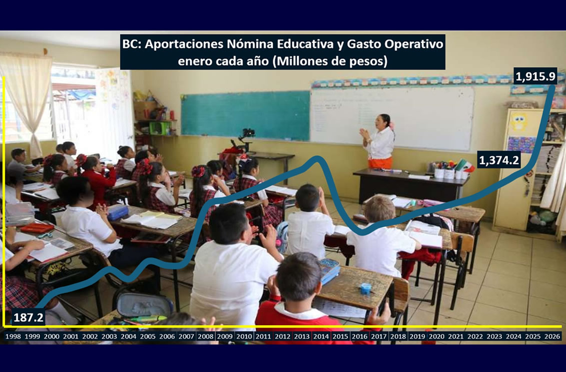 TIJUANA BC 16 DE MARZO DE 2026 (AFN).- El gobierno del Estado de Baja California recibió un fuerte aumento del 34.3% real a tasa anual para el pago de maestros de educación básica durante enero de 2026 respecto al mismo mes de 2025, de acuerdo con la actualización de las transferencias realizadas por la Secretaría de Hacienda y Crédito Público (SHCP).