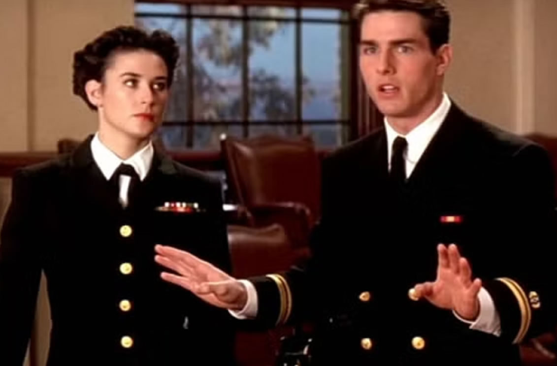 Cuestión de honor, dirigida por Rob Reiner y estrenada el 11 de diciembre de 1992, fue filmada entre octubre y diciembre de 1991 en locaciones de Los Ángeles, California, y Washington D.C. El drama legal, basado en la obra de Aaron Sorkin, se centra en el juicio militar de dos marines acusados de asesinar a un compañero en la base de Guantánamo, Cuba. Moore interpretó a la teniente comandante JoAnne Galloway, una abogada militar decidida, mientras que Cruise encarnó al abogado defensor Daniel Kaffee. El elenco incluyó a Jack Nicholson como el coronel Nathan Jessup, Kevin Bacon, Kiefer Sutherland y Cuba Gooding Jr. La cinta recaudó 243 millones de dólares a nivel mundial con un presupuesto de 40 millones y recibió cuatro nominaciones al Óscar, incluyendo Mejor Película, Mejor Actor de Reparto (Nicholson) y Mejor Montaje. La icónica frase de Nicholson, “¡No puedes con la verdad!”, se convirtió en un hito de la cultura popular.