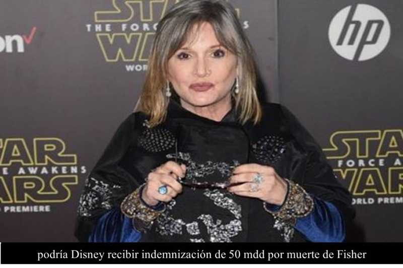 Estados Unidos 2 DE ENERO DE 2017 (La silla Rota).- Luego de la inesperada muerte de Carrie Fisher, Disney podría obtener una indemnización por 50 millones de dólares provenientes de la póliza de seguro de la actriz, quien falleció el pasado 27 de diciembre, según informó el portal de noticias New York Post.