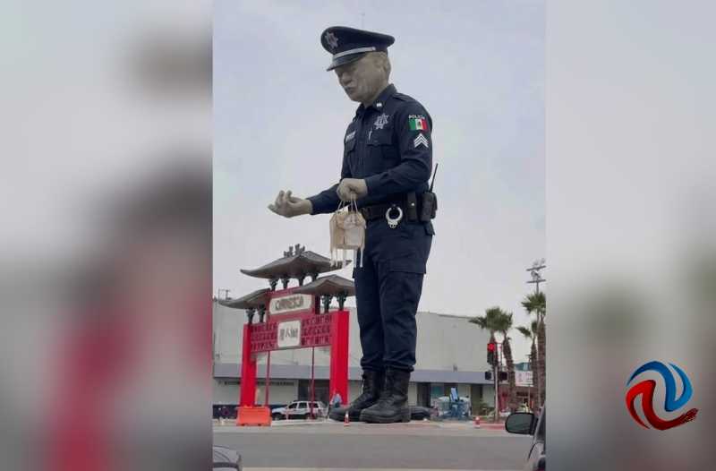 La más reciente es del regidor del Cabildo de Mexicali, Manuel Rude García, quien lo figuró como un elemento de policía, con su tradicional uniforme azul y llevando una cajita en la mano, además de los clásicos aditamentos que llevan consigo los agentes del orden.