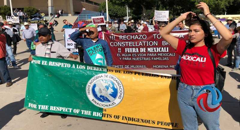 MEXICALI BC 26 DE ENERO DE 2020 (AFN).- Un contingente de al menos mil personas, marcharon en Mexicali en manifestación en contra de la instalación de la empresa cervecera Constellation Brands.
