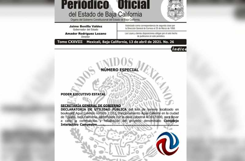 TIJUANA BC 13 DE ABRIL DE 2021 (AFN).- Este martes se publicó en el Periódico Oficial del Estado la “Declaratoria de Utilidad Pública” del predio donde se ubica el Club Campestre de Tijuana, con lo que inicia el proceso de expropiación de manera formal.