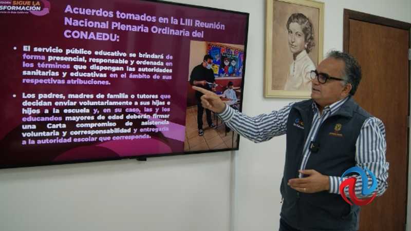 De acuerdo con la información, el pasado 12 y 13 de agosto, la Secretaría de Educación del Estado participó en la LIII Reunión Nacional Plenaria Ordinaria del Consejo Nacional de Autoridades Educativas (CONAEDU), por lo que el tema principal fue el regreso a clases presenciales de una manera "gradual, responsable y ordenado", las cuales inician el próximo 30 del mismo mes.
