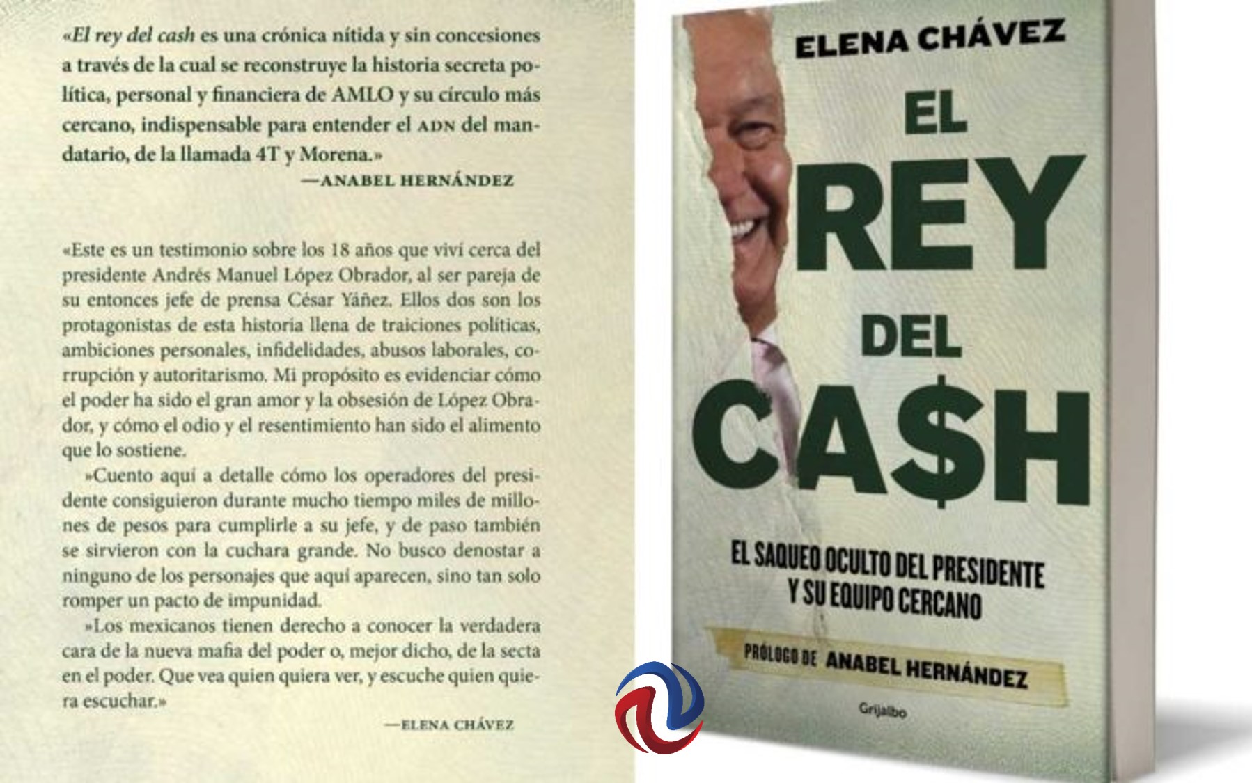 TIJUANA BC 11 DE OCTUBRE DE 2022 (AFN).- Con 28 capítulos, tres entrevistas y cinco anexos con declaraciones patrimoniales, ayer lunes salió a la venta físicamente el libro “El Rey del Cash”, escrito por la periodista Elena Chávez, en el que narra, como testigo, a veces presencial y a veces “de oídas”, algunos pasajes de lo que afirma que ocurrió por varios años, previo a la llegada de Andrés Manuel López Obrador al poder.
