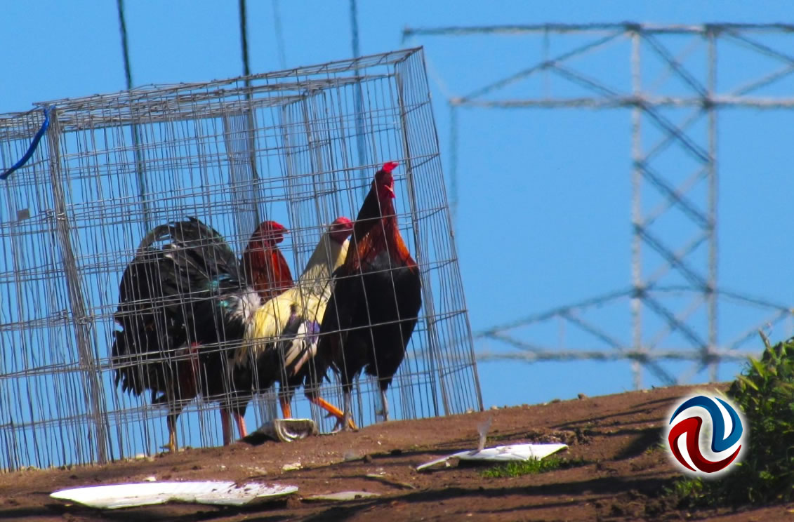 PLAYAS DE ROSARITO BC 28 DE MARZO DE 2023 (AFN).- Un comerciante de la colonia Plan libertador, tiene a la venta gallos de pelea, aves que ofrece en jaulas afuera de su negocio, justo a un costado de una torre de alta tensión, enfrente de la parroquia católica "Nuestra Señora de Guadalupe".