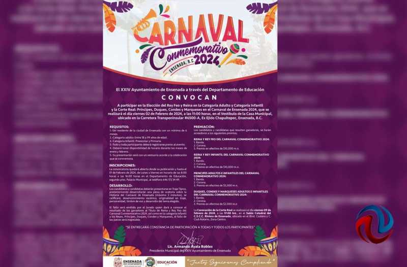 ENSENADA BC 27 DE ENERO DE 2024 (AFN).- El 24 Ayuntamiento de Ensenada, a través del Instituto Municipal del Deporte y Recreación (Inmudere), promueve la Copa Carnaval 2024, la cual tendrá una serie de eventos deportivos, diseñados para celebrar la alegría y la unión familiar en el marco de las tradicionales fiestas durante el mes de febrero.