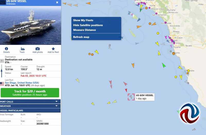 ENSENADA BC 4 DE FEBRERO DE 2025 (AFN).- El portaviones USS Nimitz, de las fuerzas armadas de Estados Unidos, permanece, desde el lunes, frente a costas de Ensenada, junto con al menos dos embarcaciones militares más, al parecer de reabastecimiento, según se observó en la plataforma “marinetraffic”.