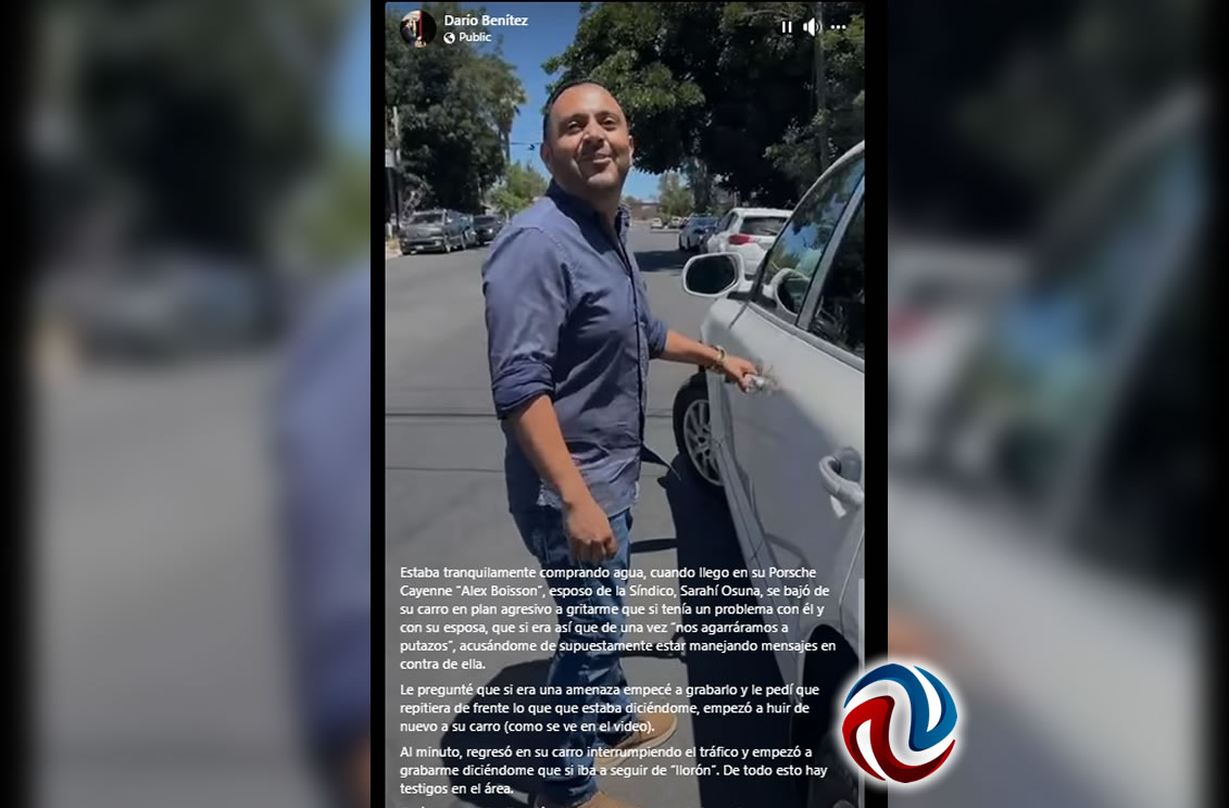 "Estaba tranquilamente comprando agua, cuando llego en su Porsche Cayenne 'Alex Boisson', esposo de la Síndico, Sarahí Osuna, se bajó de su carro en plan agresivo a gritarme que si tenía un problema con él y con su esposa, que si era así que de una vez 'nos agarráramos a putazos'", escribió el ex munícipe tecatense.