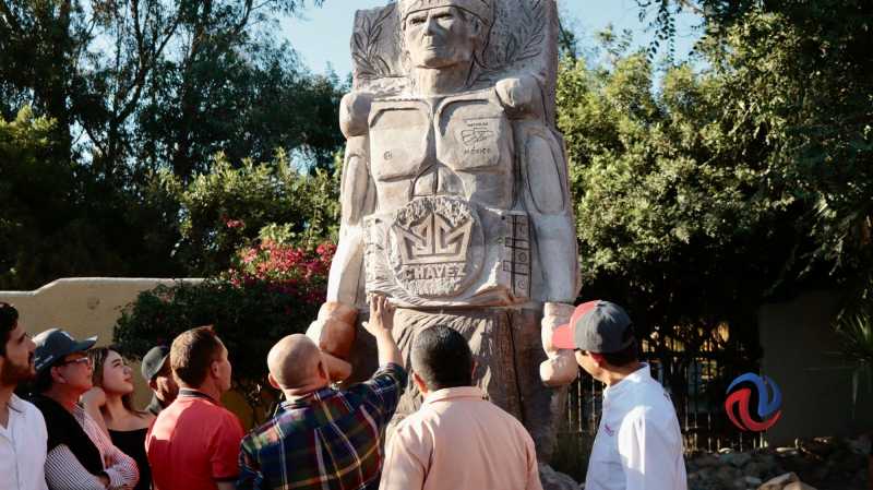 TECATE BC 5 DE AGOSTO DE 2025 (AFN).- La tarde de este martes fue develada una estatua de piedra dedicada al exboxeador Julio César Chávez en la Unidad Deportiva Eufrasio Santana (UEDS) de Tecate, con un evento encabezado por el “Gran Campeón Mexicano”.