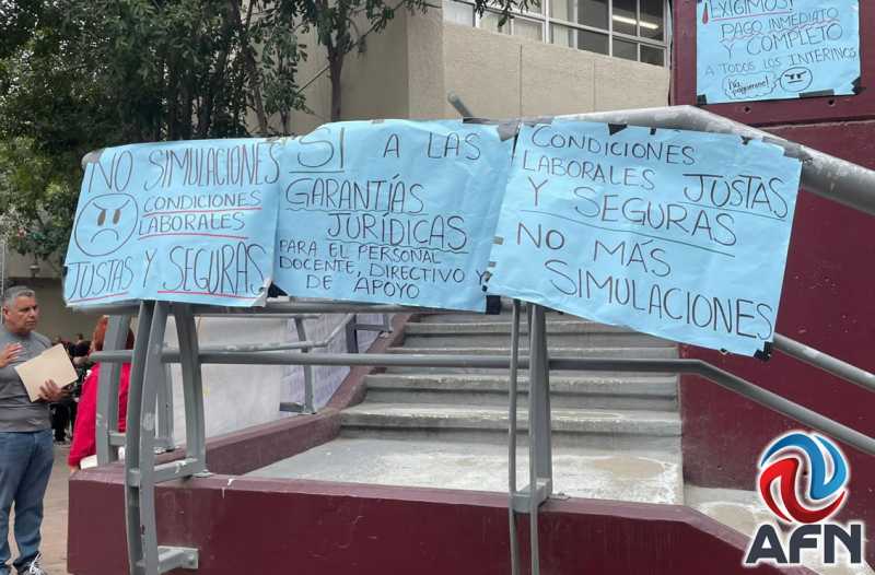 TIJUANA BC 29 DE SEPTIEMBRE DE 2025 (AFN).- A 13 días de protesta, maestros del Sindicato Estatal de Trabajadores de la Educación (SETE BC) se manifestaron frente a la Secretaría de Educación en Tijuana, en rechazo a la aplicación de una guía protocolaria incompleta y para exigir el pago de adeudos laborales.