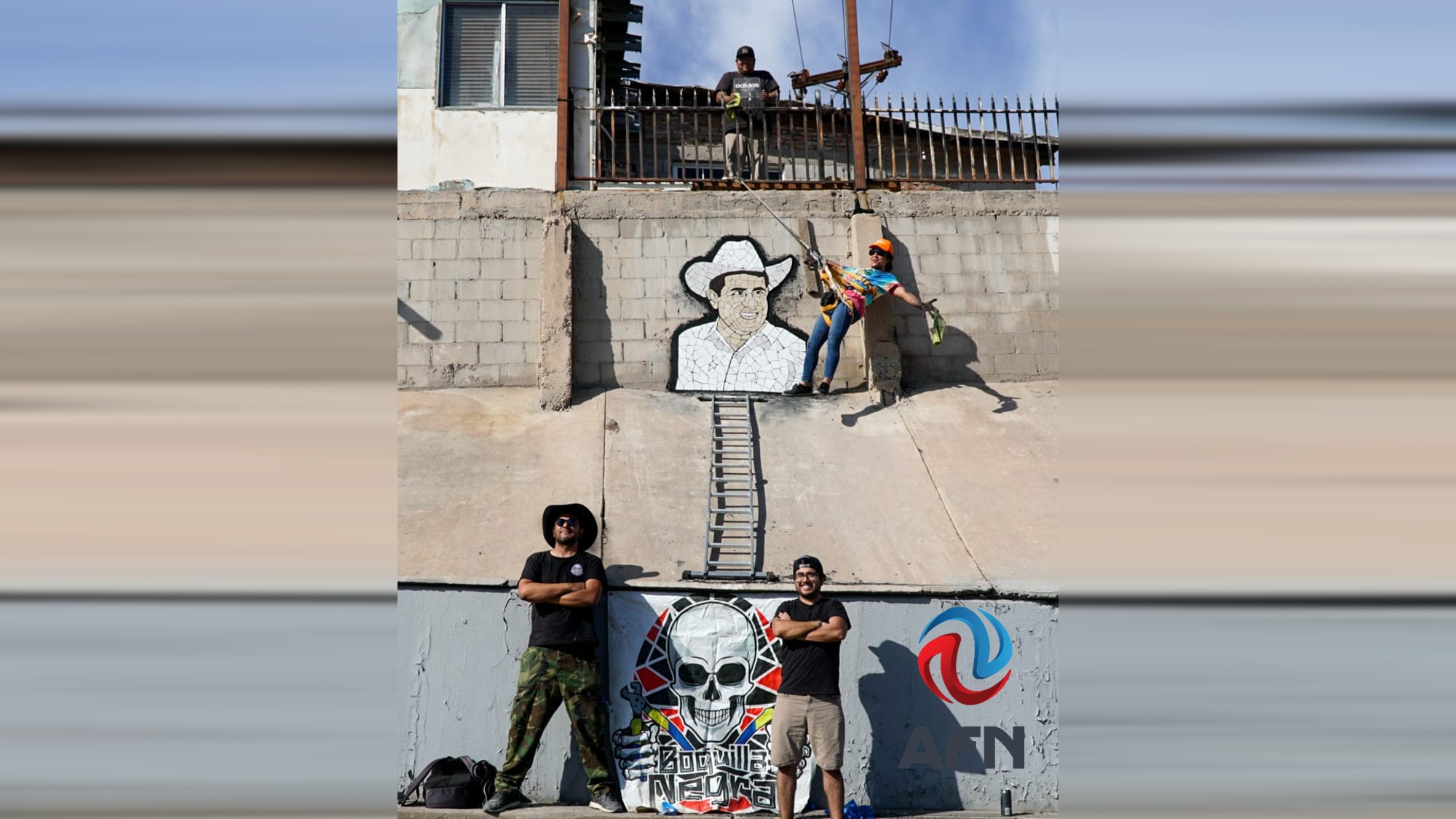 MEXICALI BC 16 DE NOVIEMBRE DE 2025 (AFN).- El colectivo “Boquilla Negra” realizó un mosaico para honrar la memoria de Carlos Manzo, presidente municipal de Uruapan, Michoacán, asesinado la noche del pasado 1 de noviembre.