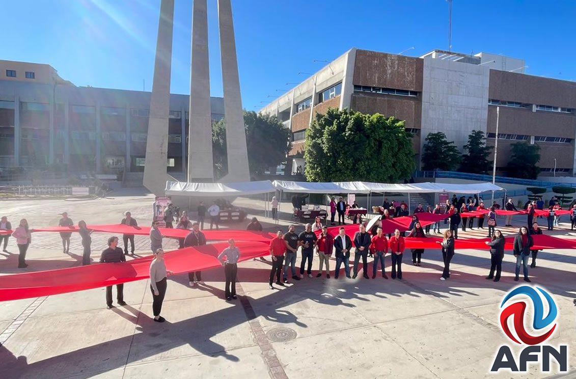 El secretario encabezó la formación del lazo contra la enfermedad en la explanada de los tres poderes en Mexicali .