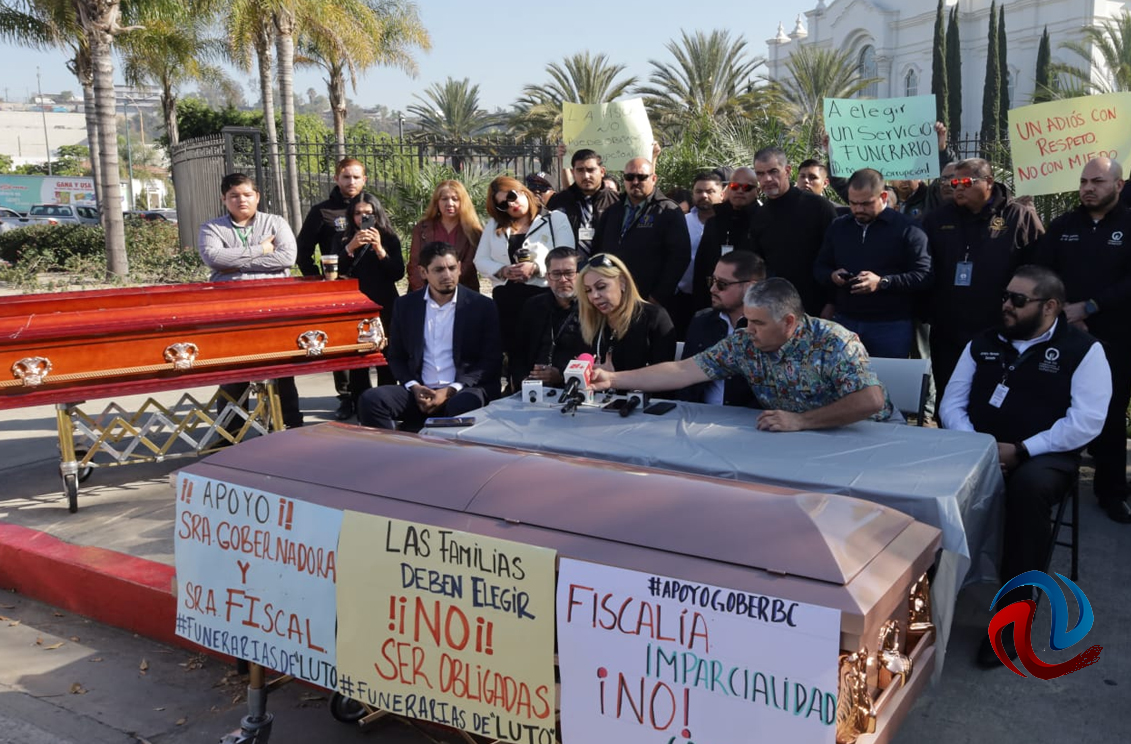 TIJUANA BC 16 DE DICIEMBRE DE 2025 (AFN).- Integrantes de la Unión de Funerarias de Tijuana, se manifestaron este martes debido a que, según dijeron, -ciertas personas- han estado beneficiando y apoyando únicamente a un par de funerarias de la ciudad, con los procedimientos de levantamiento de los cuerpos.