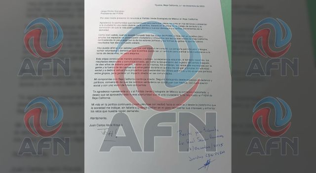 TIJUANA BC 17 DE DICIEMBRE DE 2025 (AFN).- El ex regidor de Tijuana, Juan Carlos Hank Krauss -hijo del ex alcalde y ex candidato a gobernador Jorge Hank Rhon-, anunció su renuncia al Partido Verde Ecologista de México (PVEM), bajo cuyas siglas participó en las elecciones de 2024 en busca de una senaduría.