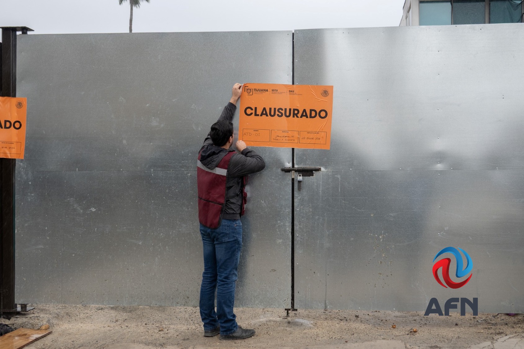 TIJUANA BC 19 DE FEBRERO DE 2026 (AFN).- Este jueves fueron retirados los sellos de clausura de la obra de construcción de un edificio en la calle Laredo, en la colonia Madero Sur -La Cacho- tras llegar a un acuerdo con vecinos del lugar.
