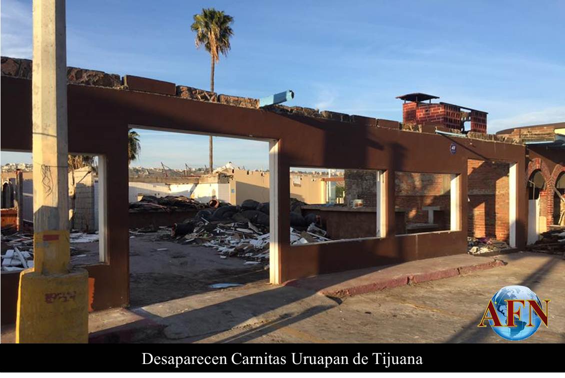 TIJUANA BC 6 DE MAYO DE 2016 (AFN).- “Si no conoces Carnitas Uruapan, no conoces Tijuana”, era el slogan del negocio de carnitas, lugar obligado para visitar en la ciudad de Tijuana, y que hoy en día está siendo demolido para convertirse en un centro comercial en el bulevar Agua Caliente, frente a Plaza Patria