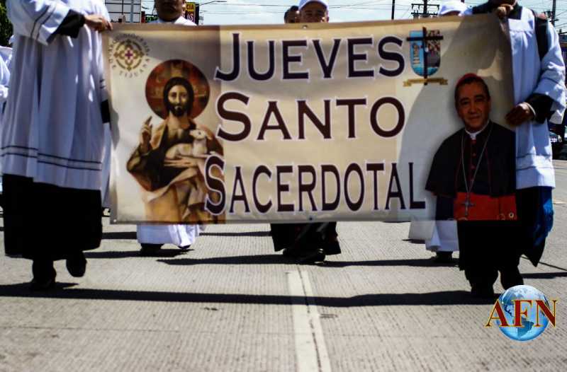 TIJUANA BC 13 DE ABRIL DE 2017 (AFN).- Alrededor de 200 sacerdotes de la ciudad de Tijuana y de la región, encabezados por el Arzobispo, Francisco Moreno Barrón, realizaron una procesión para conmemorar el Día del Sacerdote.