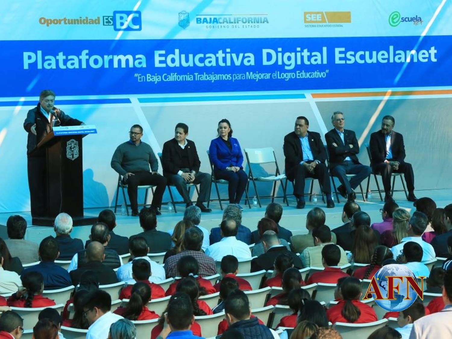 MEXICALI BC 7 DE FEBRERO DE 2018 (AFN).- El gobernador Francisco Vega de Lamadrid, encabezó el acto de presentación de la Plataforma Educativa Digital “Escuela Net”, mediante la cual se atenderán a 161 mil 864 estudiantes y 10 mil 926 docentes de 470 escuelas secundarias en la entidad.