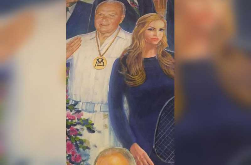 *.- Sergio Gavaldón y su hija, en una imagen de un Mural elaborado con personajes de la ciudad.