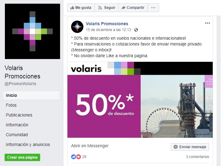 La alerta por fraude con boletos de avión, fue por detectar páginas falsas de Aeroméxico, Volaris e Interjet, en donde se piden depósitos cuentas OXXO u otras tiendas, se informó; y estas "fan page" se hallaron a través de patrullajes en red en la citada página social.
