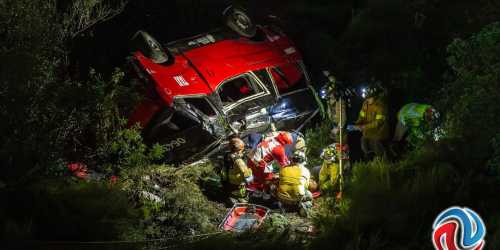 TIJUANA BC 17 DE FEBRERO DE 2026 (AFN).- Un taxista de la línea Rojo y Negro fue rescatado por elementos del cuerpo de Bomberos, tras caer con todo y su unidad ...