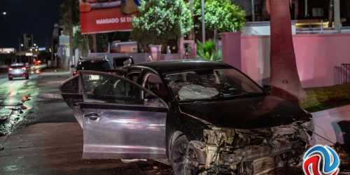 TIJUANA BC 22 DE NOVIEMBRE DE 2025 (AFN).- Un vehículo fue dañado por las llamas, tras ocurrir un fuerte choque contra otra unidad en la vía rápida Poniente ...