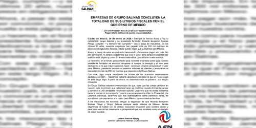 CIUDAD DE MÉXICO 29 DE ENERO DE 2026 (AFN).- El Servicio de Administración Tributaria (SAT) dio a conocer que el empresario Ricardo Salinas Pliego llegó a un ...