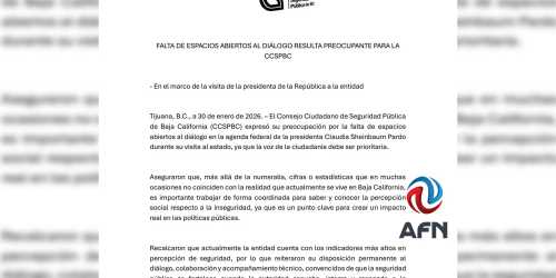 TIJUANA BC 30 DE ENERO DE 2026 (AFN).- Baja California cuenta con los indicadores más altos en percepción de inseguridad, y las estadísticas presentadas por las ...