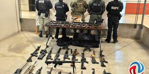 TIJUANA BC 16 DE ENERO DE 2026 (AFN).- Más de 50 armas de fuego, cargadores y un vehículo fueron decomisadas en la carretera antigua Tijuana-Tecate, a la altura ...